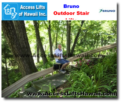 Use Bruno outdoor stair lifts to glide down to a lake, patio or porch. Bruno's straight and curved outdoor stair lifts are engineered to withstand extreme weather conditions and are available for extra-long staircases. Enjoy nature with friends and family again with a Bruno outdoor stair lift.