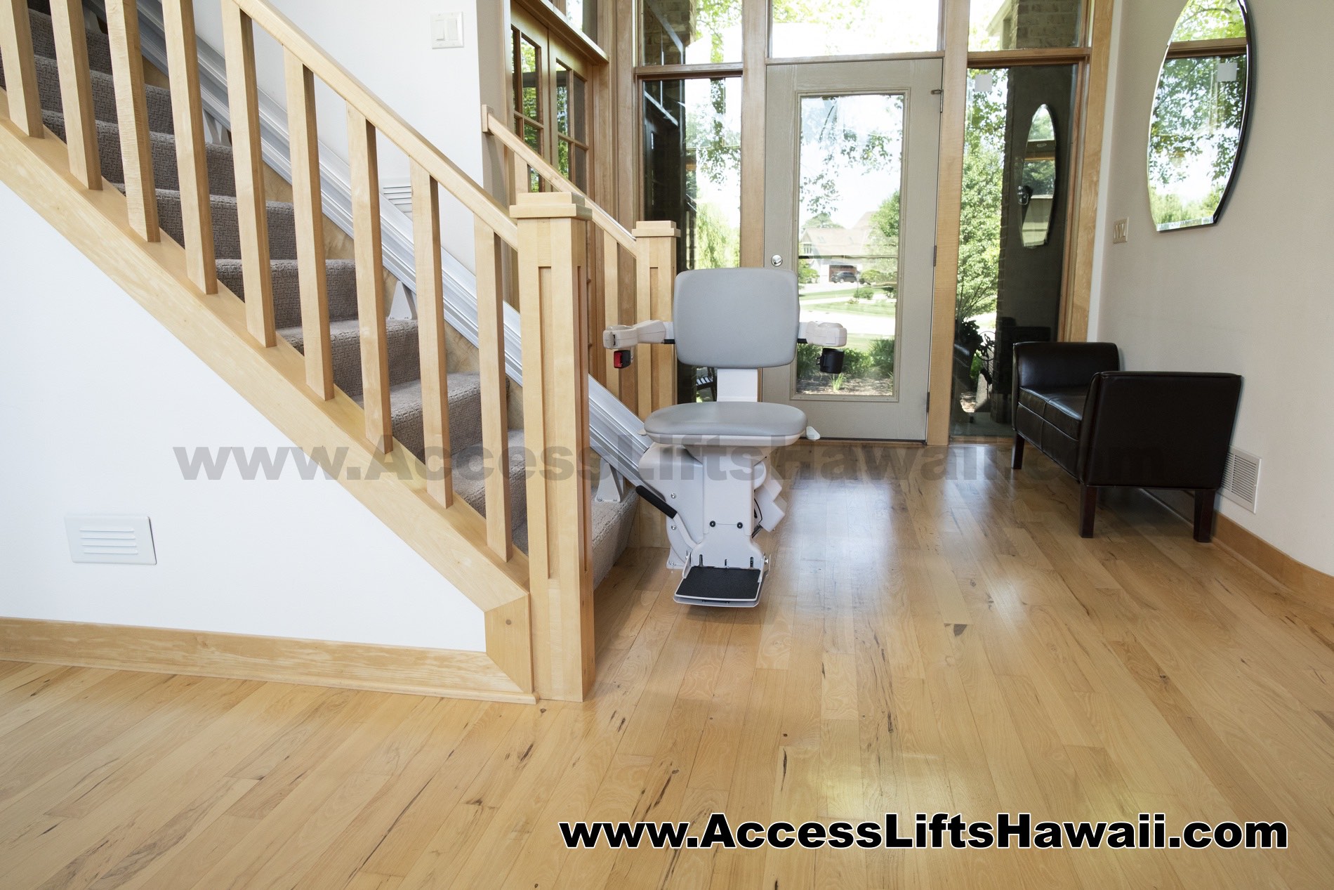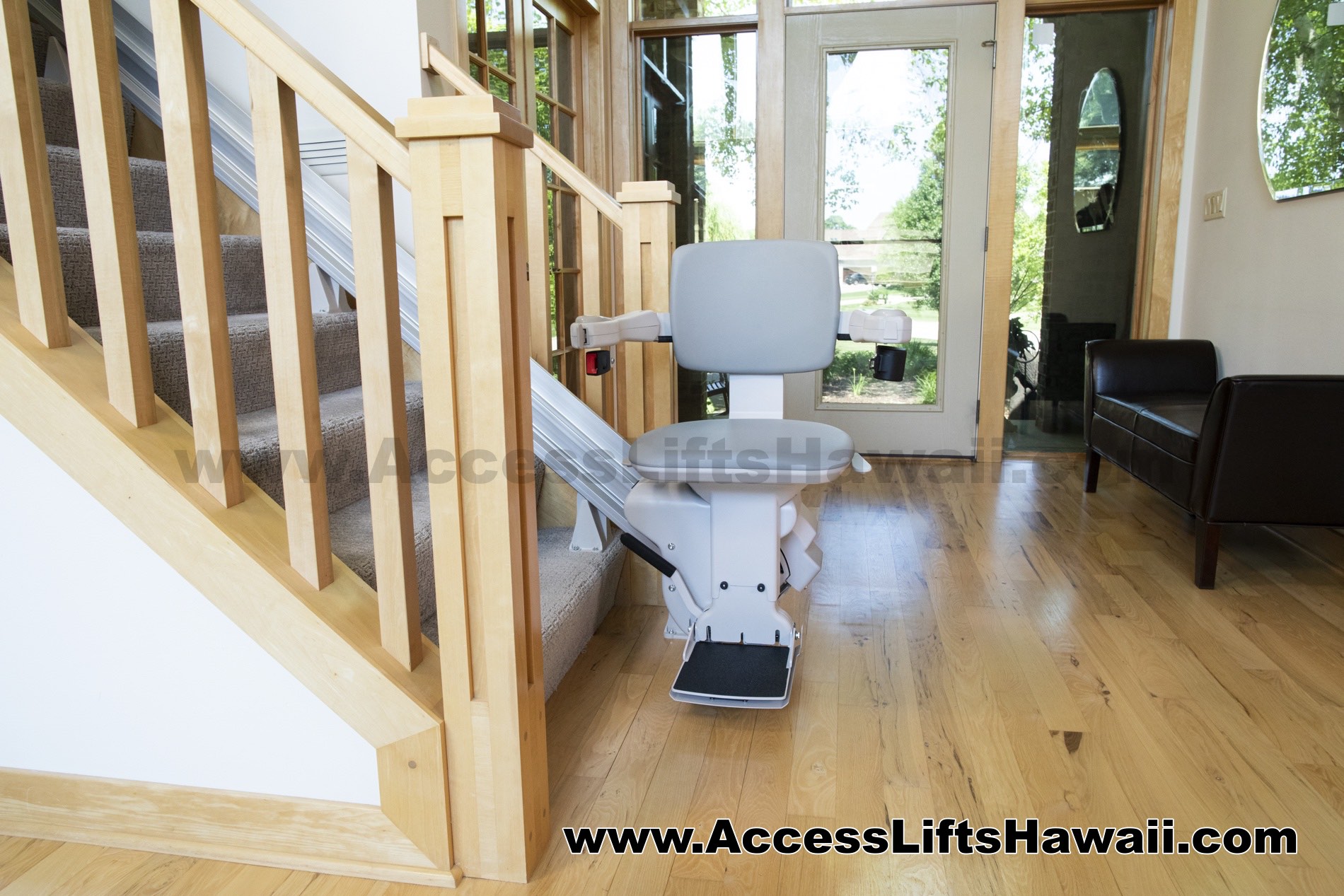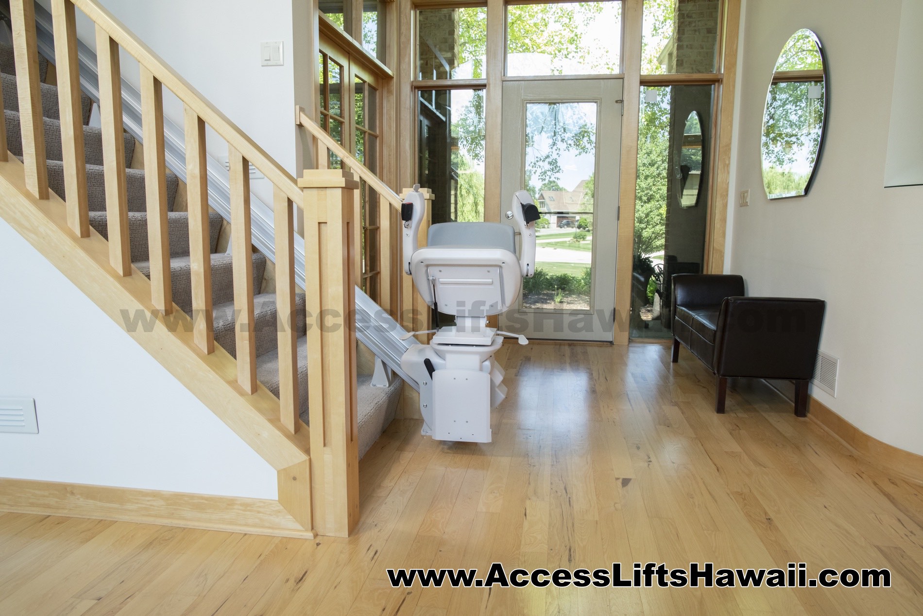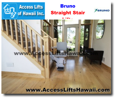With Bruno straight stair lifts, you can count on Made in USA quality, space-saving design and reliable engineering. Bruno straight stair lifts feature an exclusive vertical rail that leaves maximum open space on the stairs and gives a sleek, clean appearance.