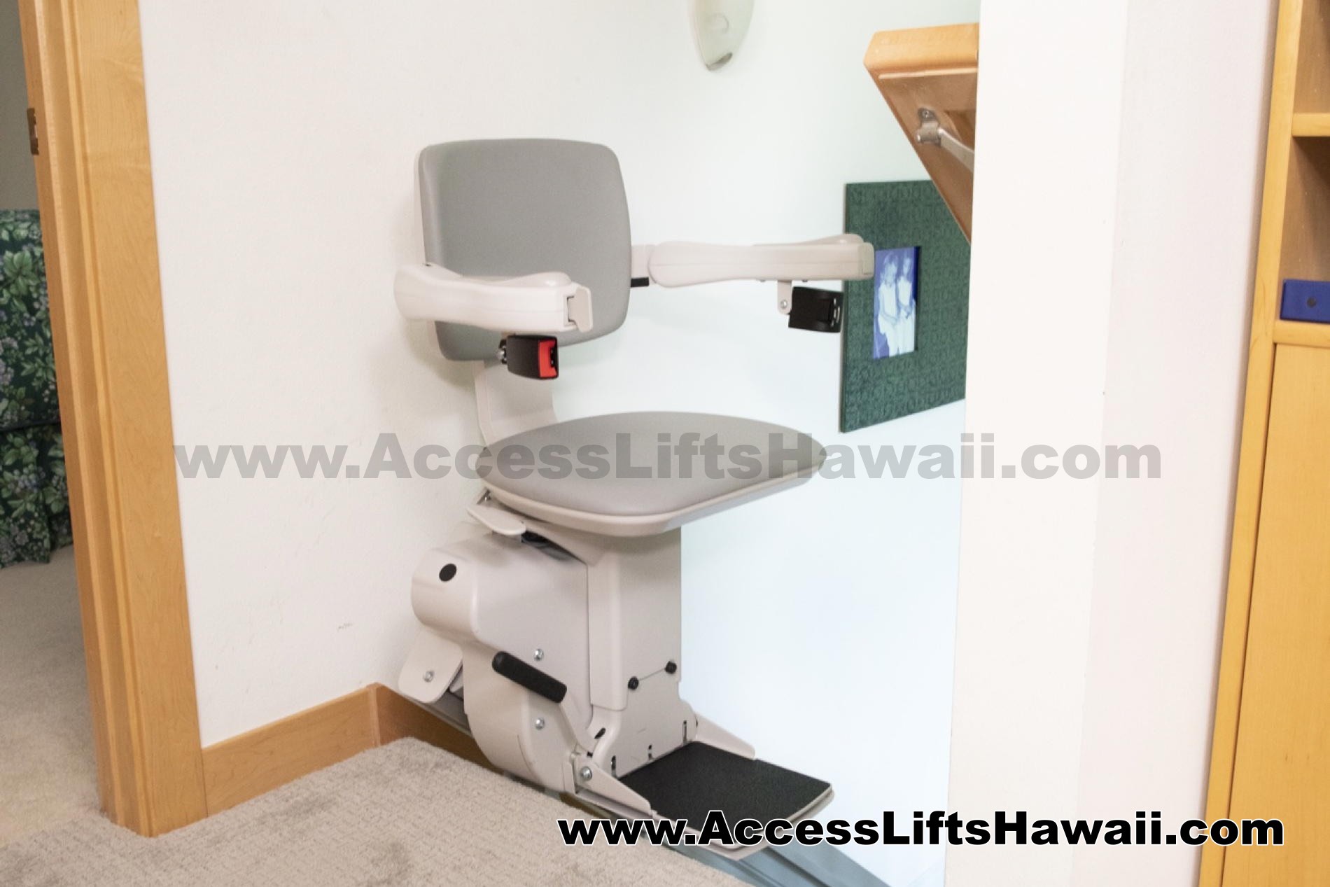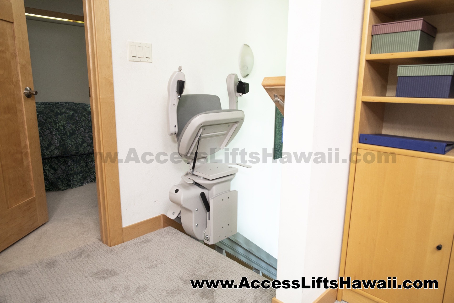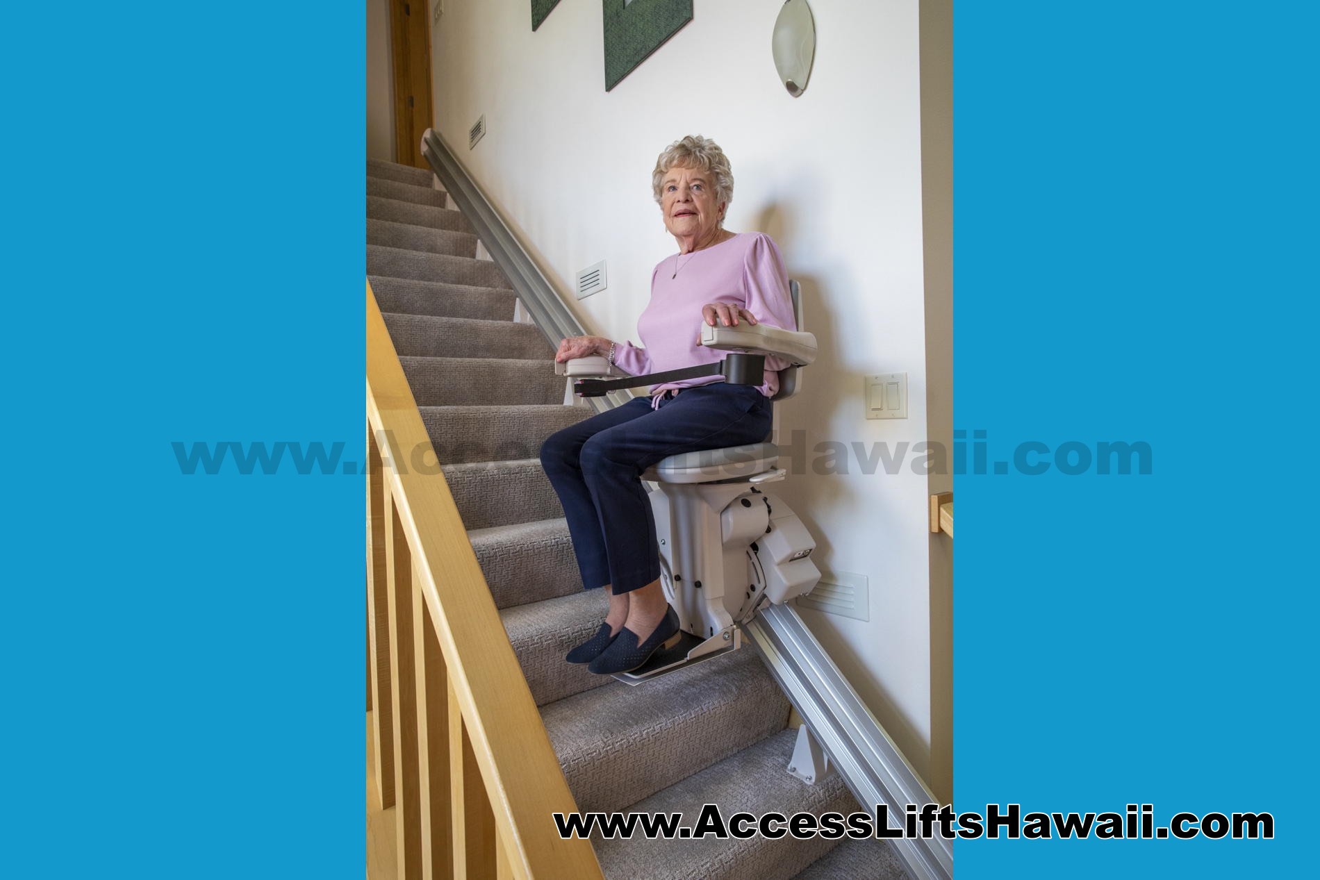 With Bruno straight stair lifts, you can count on Made in USA quality, space-saving design and reliable engineering. Bruno straight stair lifts feature an exclusive vertical rail that leaves maximum open space on the stairs and gives a sleek, clean appearance.