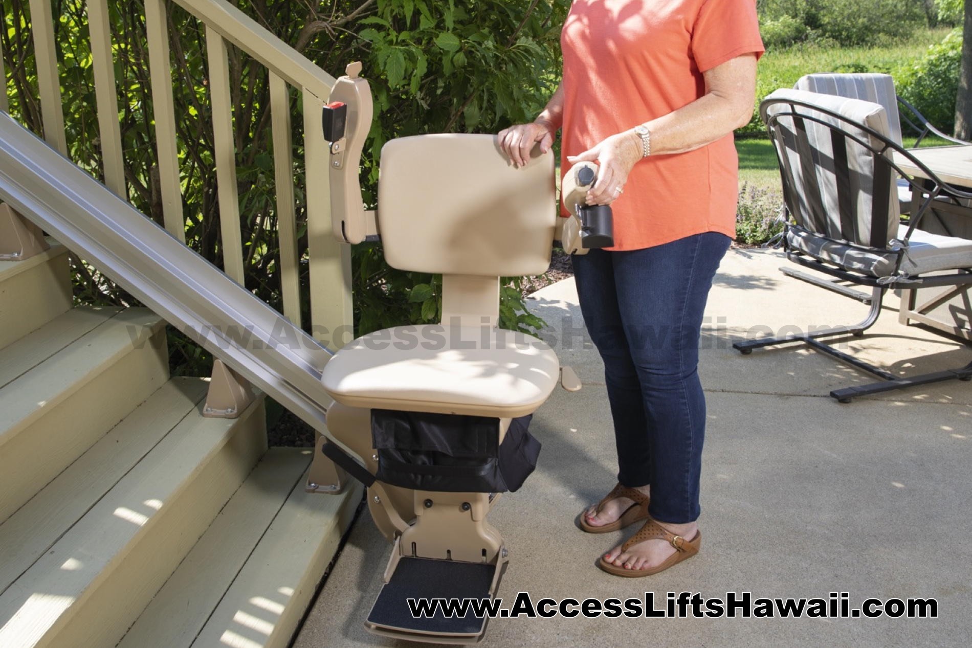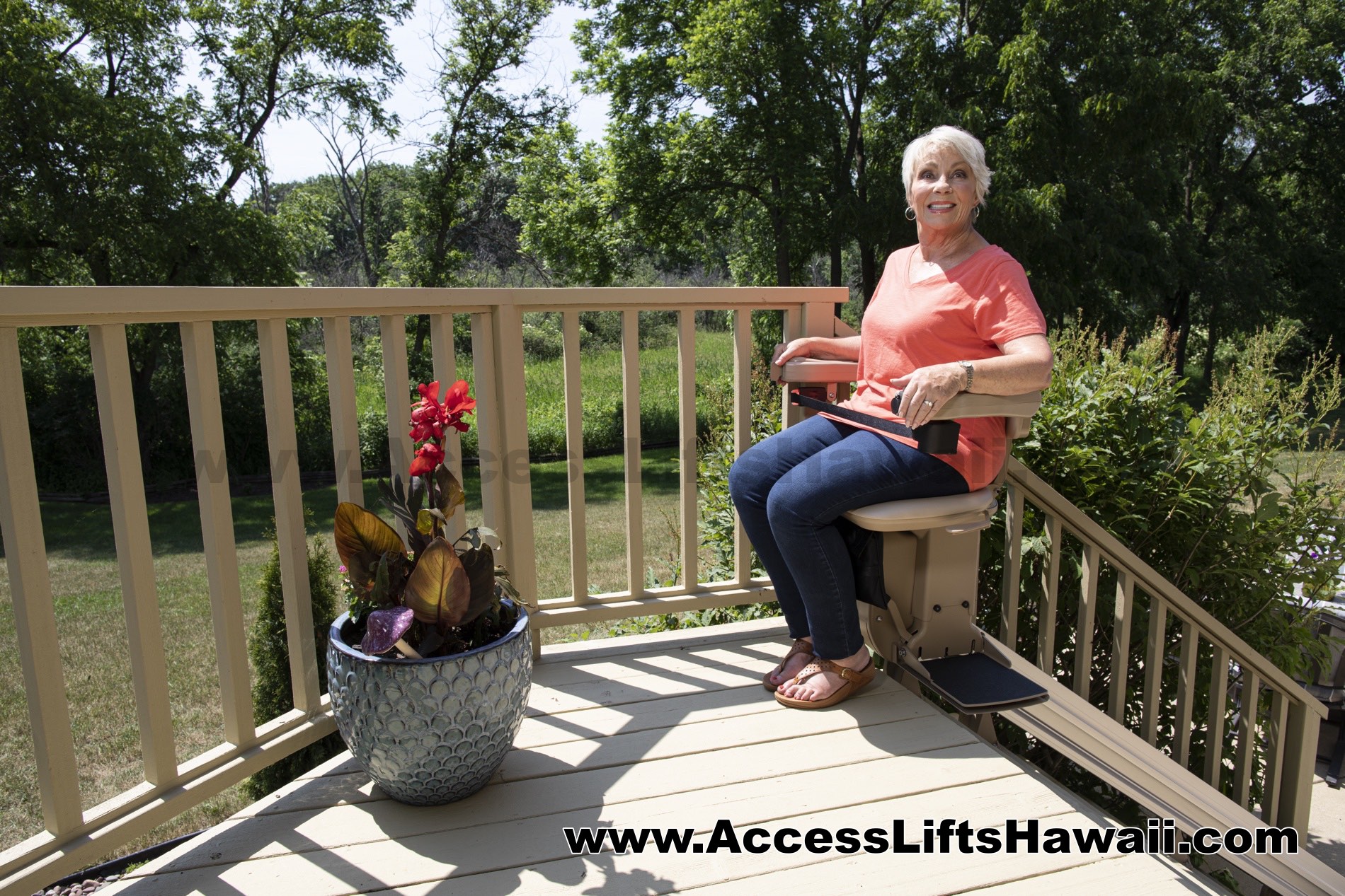 Use Bruno outdoor stair lifts to glide down to a lake, patio or porch. Bruno's straight and curved outdoor stair lifts are engineered to withstand extreme weather conditions and are available for extra-long staircases. Enjoy nature with friends and family again with a Bruno outdoor stair lift.