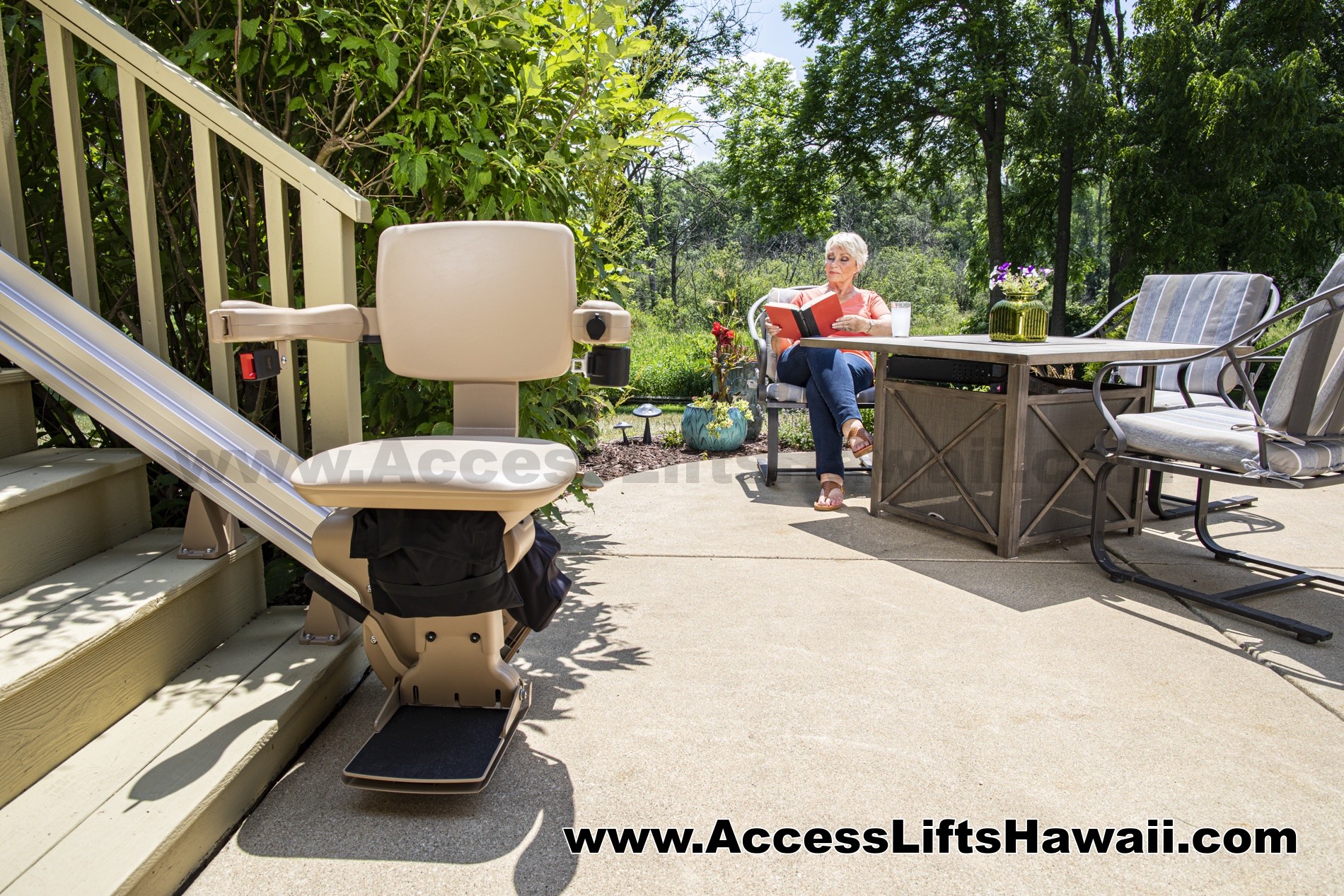 Enjoy a Bruno outdoor straight stair lift as a safe, easy alternative to climbing steps to the patio, lake, garden or even to your front door.